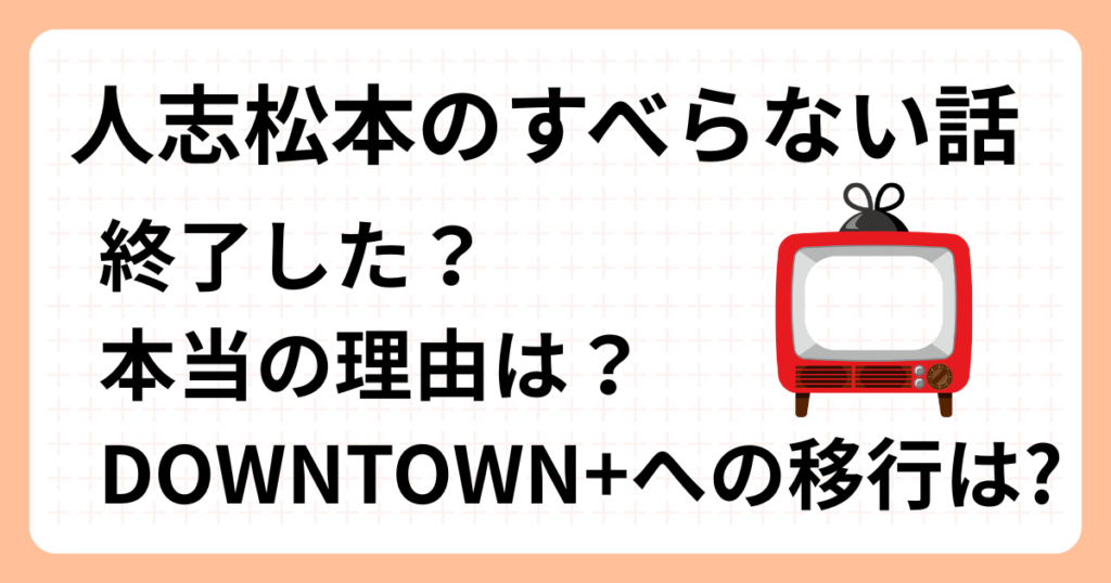 人志松本のすべらない話終了?本当の理由やDOWNTOWN+への移行は?