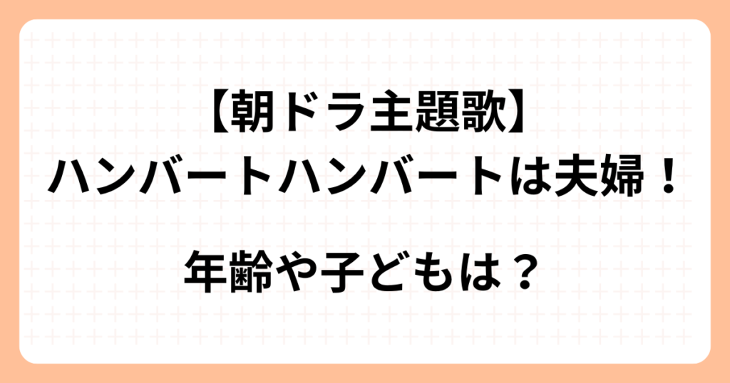 【朝ドラ主題歌】ハンバートハンバートは夫婦!年齢や子どもは?