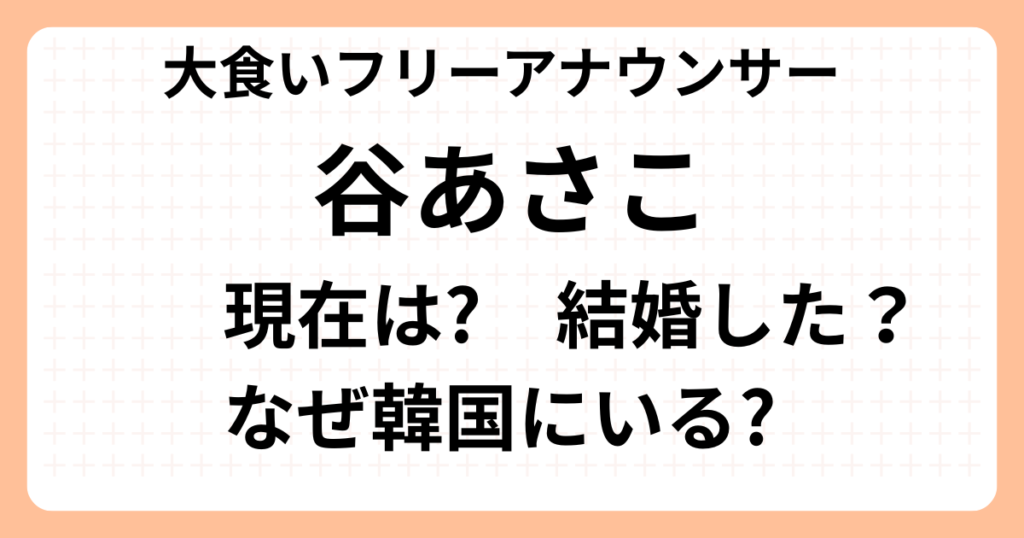 大食いアナウンサー谷あさこ現在は?結婚したのか調査!なぜ韓国に?