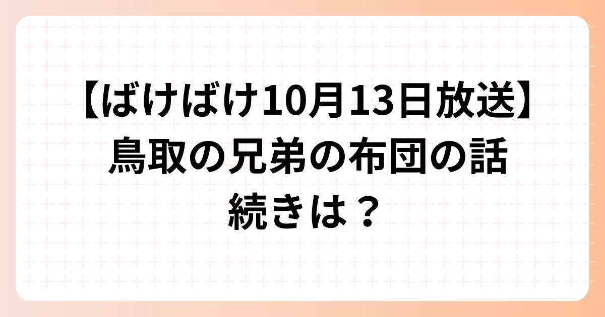 10月13日放送の「兄弟の布団の話」はかわいそうな兄弟がでてきましたね。