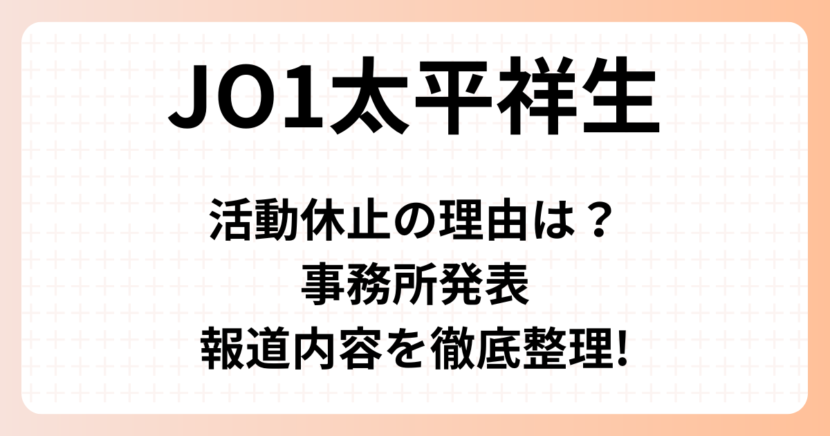 2025年10月15日、JO1 のメンバー 太平祥生(おおひら しょうせい) さんが、所属事務所 LAPONEエンタテインメント より「当面の間、活動を休止する」と発表されました。