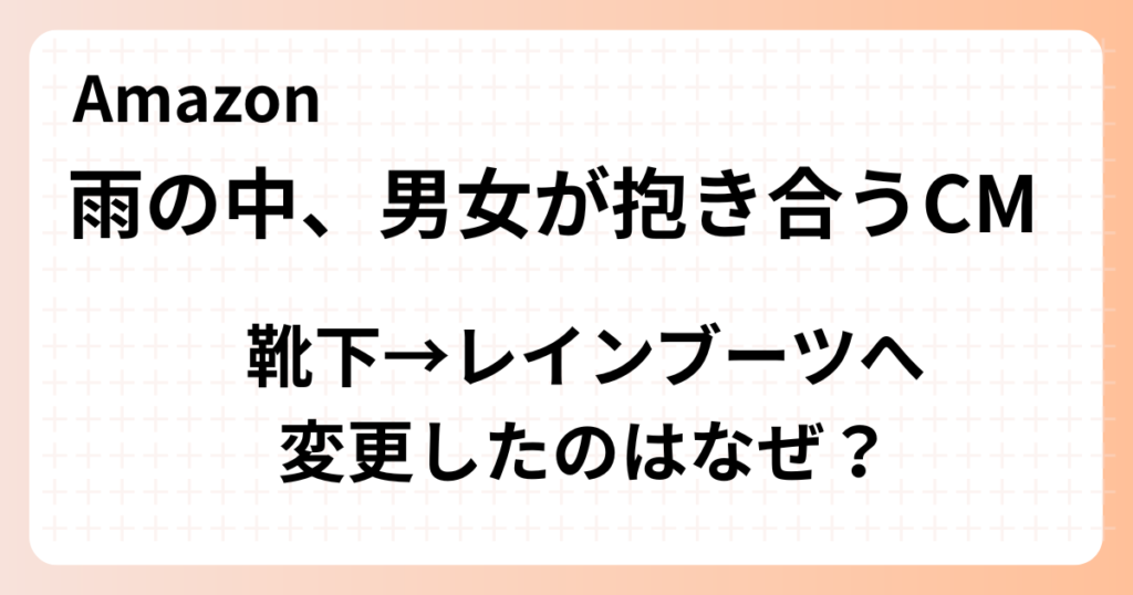 AmazonCM雨の中,男女が抱き合う|靴下からレインブーツへ変更なぜ?