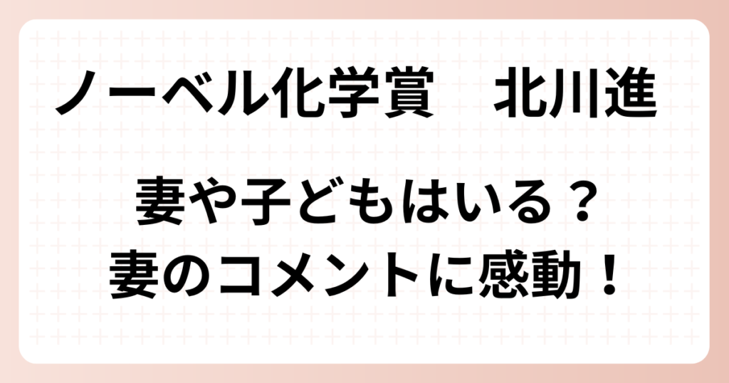 北川進さんがノーベル化学賞を受賞されましたね。 受賞の記者会見では「家族にも感謝」と発言されていました。 北川進さんの家族について気になる方も多いのではないでしょうか? この記事では 北川進さんは結婚してる? 妻や子どもはどんな人? といった... -